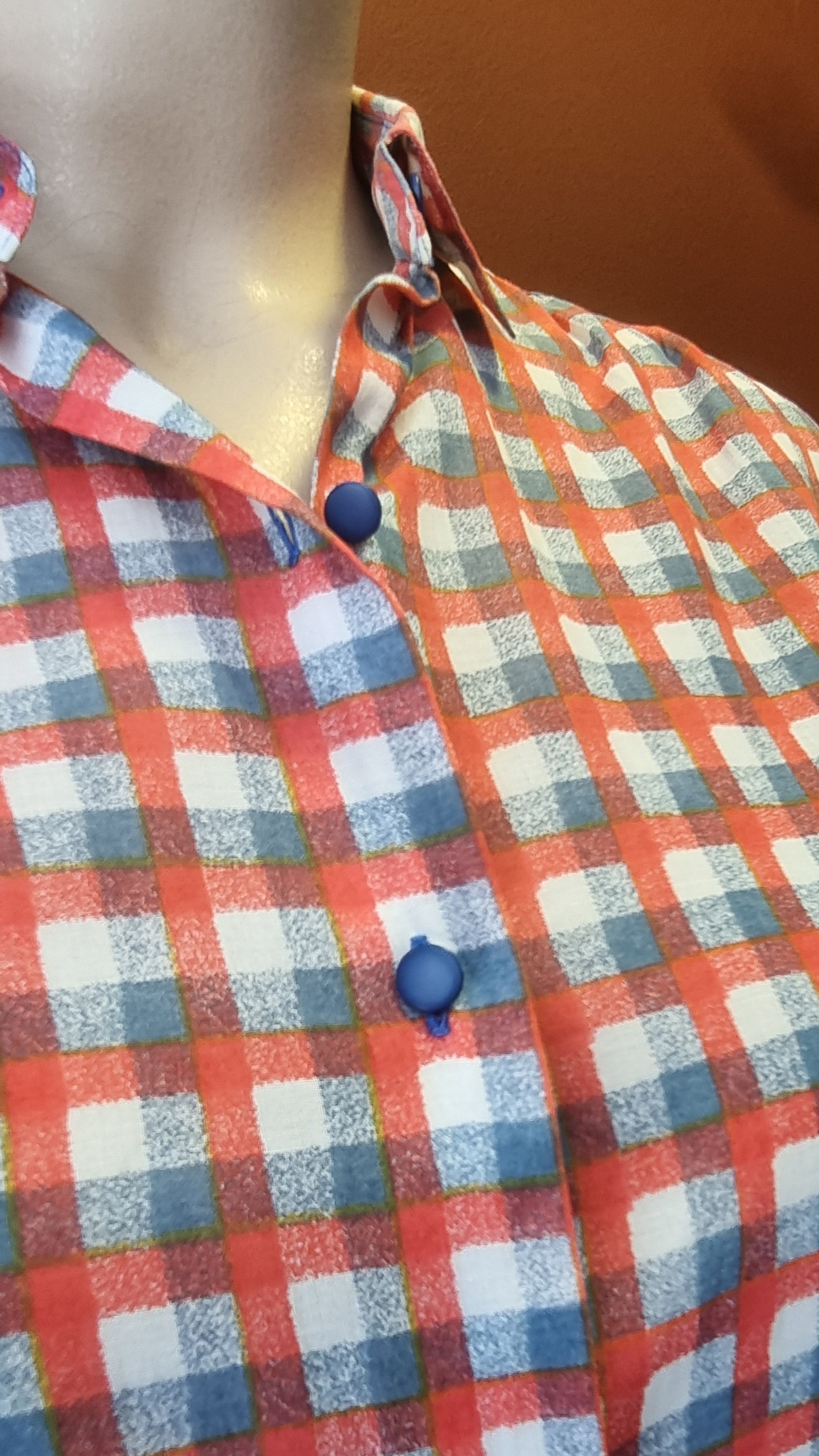 Vintage Christian Dior Prêt-à-Porter (ready to wear) in a red, white and blue gingham fabric. 100% cotton. Vintage size M, modern size 6-8.