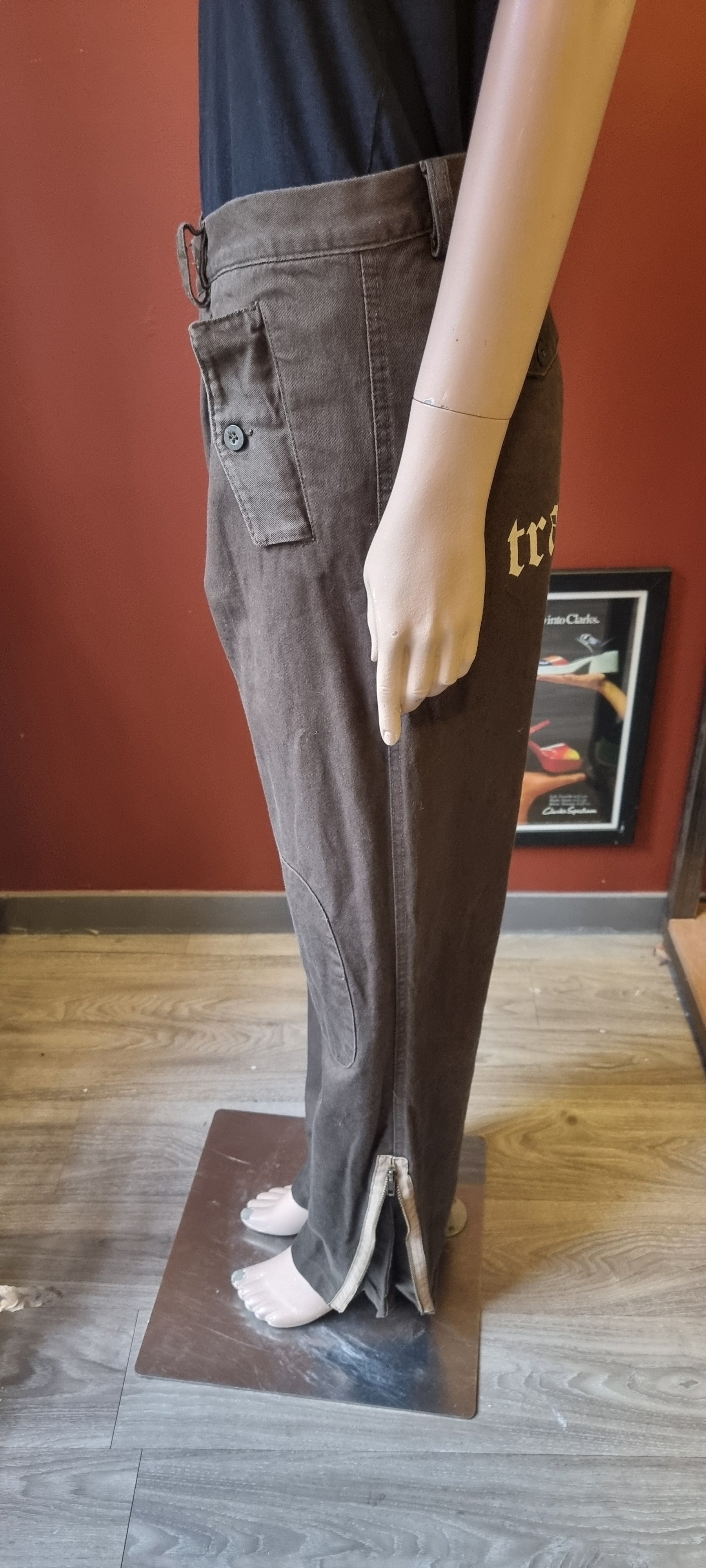 Khaki trousers with 'Trash De Luxe" motif. Size 14/16.