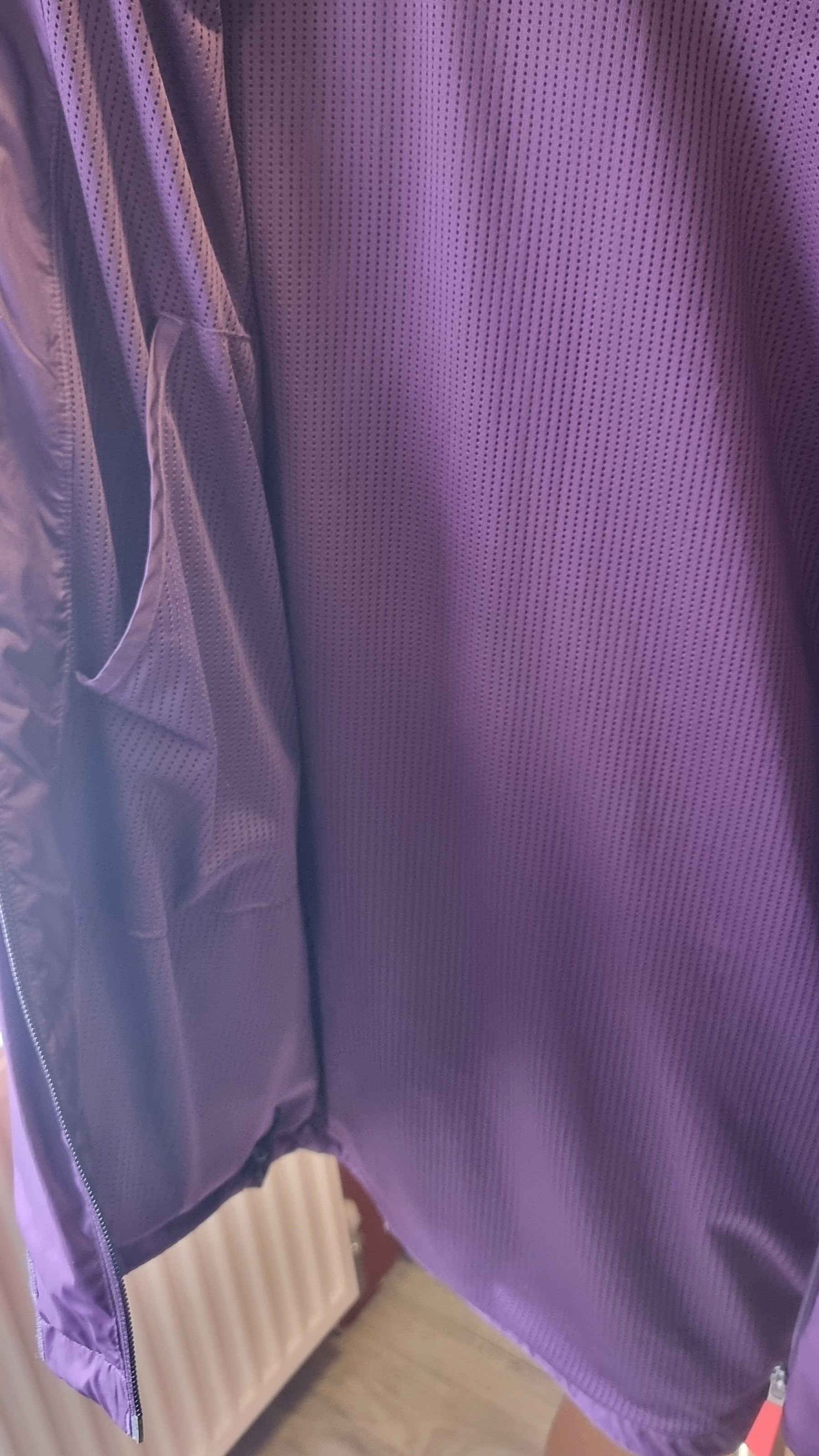 Throwback to 2012 with this official London Olympics 2012 jacket by Adidas. With a foldaway hood in an eye-catching purple and red. Size M.